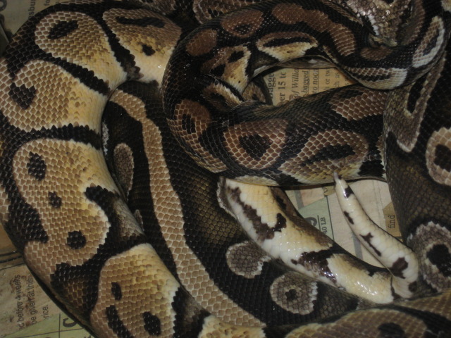 Pinstripe laid today! She was paired with mojave, pastel, spotnose, and lesser. Again, I'd put money on the pastel being the sire. I swear he could knock up a male, which he sort of did considering I bought the cinny as a male...