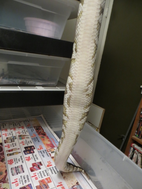 I feel like I can't post an update without a picture so here is a picture of an '09 het albino girl I picked up at the Iowa show. I'm going to pair her with my double het albino male and hope she proves out!