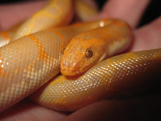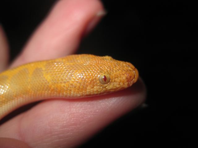 Took some new pictures of my stripe het paradox albino girl. She's very pretty, but she also has a bad attitude! I wore a glove during this photoshoot today and she bit my glove more times than I can count!